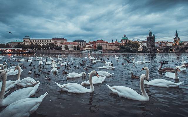 待夜幕降临前,可以去伏尔塔瓦河岸走廊散散步,每天都有成群的天鹅在此栖息,这些天鹅完全不怕人,想与它们互动合影的话不妨带上一些面包。同时,这里也是拍摄查理大桥全景的最佳取景地。