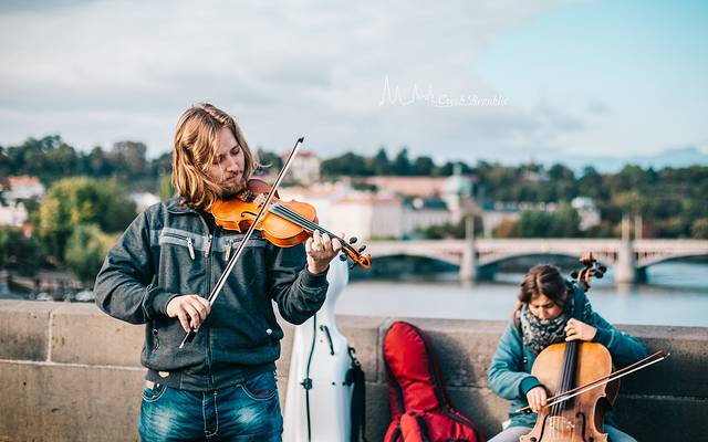 布拉格的梦幻在音乐中欢腾,每个街头艺人都表达了一个音符,串成回荡在查理大桥上的一首歌。