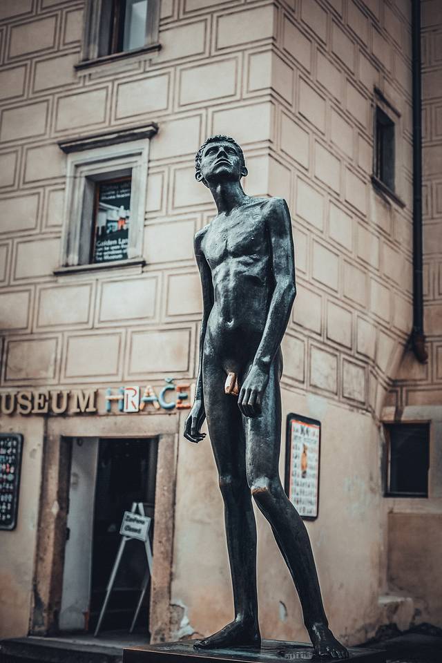 走出黄金巷,可以看到一个裸体雕像,路过的人总会投来异样的眼光,让它变得这么耀眼的人就是你我他她她她她她她她,偷偷看上一眼,这亮瞎了的颜色,让人有种羞答答的感觉。不过,摸的人如此之多,难道摸完可以一生性福子嗣绵延?编不下去了...