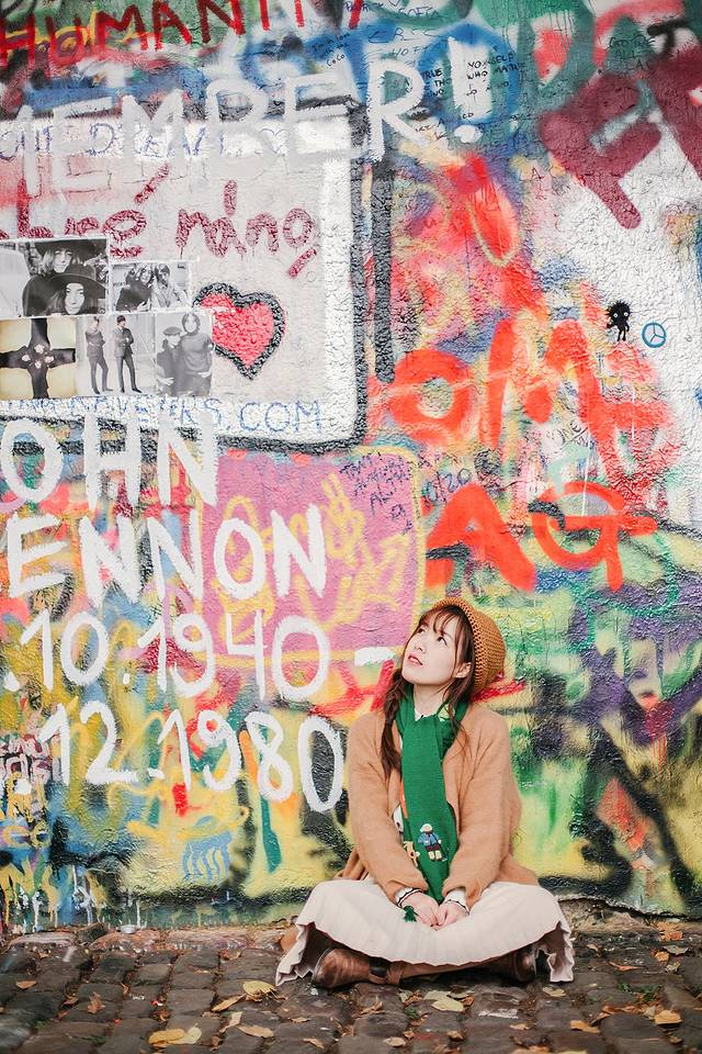 一路散步,来到位于小城广场附近的列侬墙,为纪念披头士乐队主唱约翰列侬被枪杀而命名。现在是许多文艺青年抒发情绪的一堵墙,墙上形形色色的涂鸦表达了当地年轻人对爱与和平的期望。每隔一段时间,这面墙的涂鸦就会换一批,他们用色彩肆意挥洒着青春,留下了这片斑斓让我们合影。在电影《有一个地方只有我们知道》中,几位主角也曾在此留影。