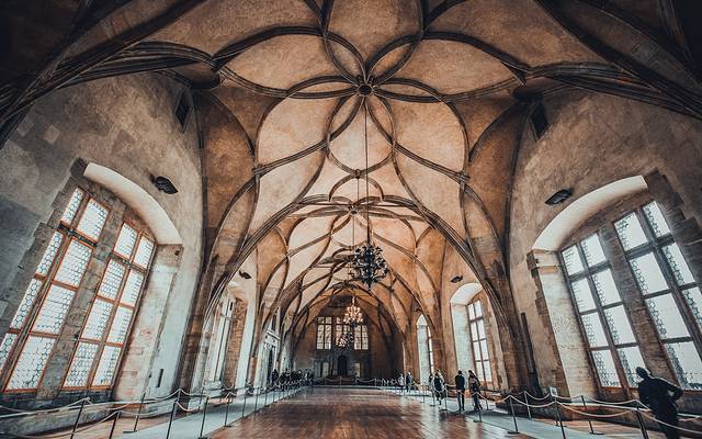 相比气势恢宏的圣维特大教堂,旧皇宫则显得无聊很多,据说这个大堂当年不仅是皇室加冕的地方,还是武士骑马格斗的竞技场。沿着空荡荡的拱形大厅走了一圈,除了天花板的那些紫荆花形纹路,并未发现什么亮点。剩余的展馆则需要购买摄影票才能拍照,大致瞄了一眼,决定省下这笔钱。