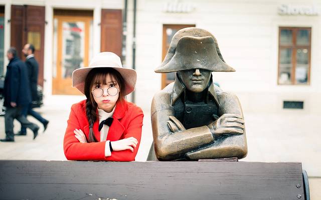 另一座比较有名的雕像是拿破仑士兵,据说当年他因为掉队而永远留在了斯洛伐克。比起那位趴在地上的猥琐大叔,这位士兵小哥的位置显然就是为了方便你拍照合影,你可以大开脑洞想出各种创意pose,没有想象力的我只能做到这样了....