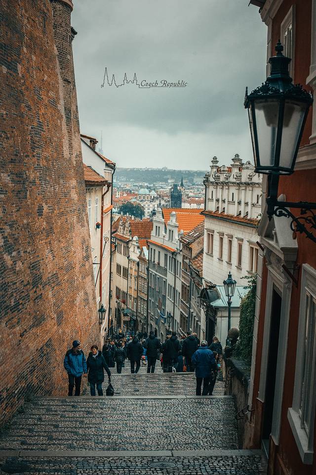 绕过小城广场,一路上坡,来到了新城堡阶梯,这个阶梯直通布拉格城堡,也是小城与城堡区的分界线。不得不说,要一口气爬完这几百级阶梯还是非常考验体力的,好在可以时不时回头去看看脚下的城市洗洗眼睛。