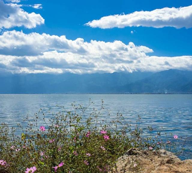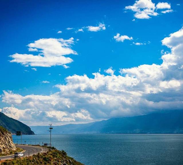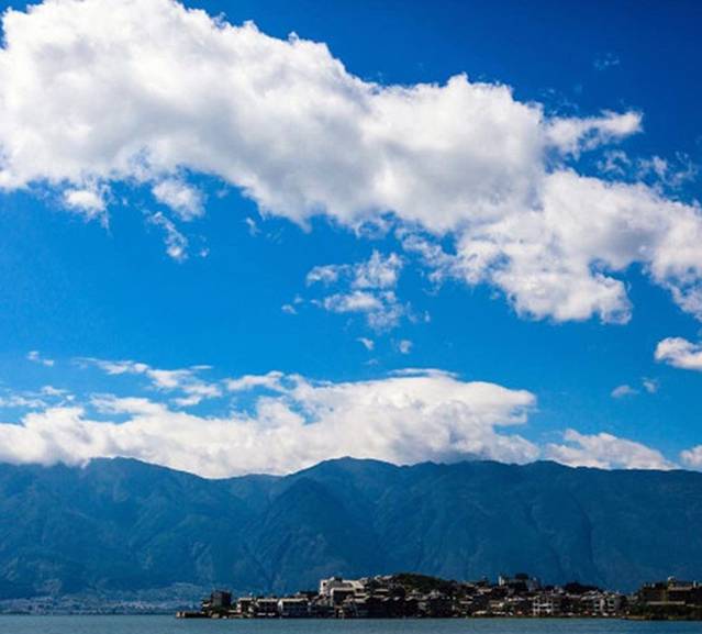 粼粼的水和游动的云。