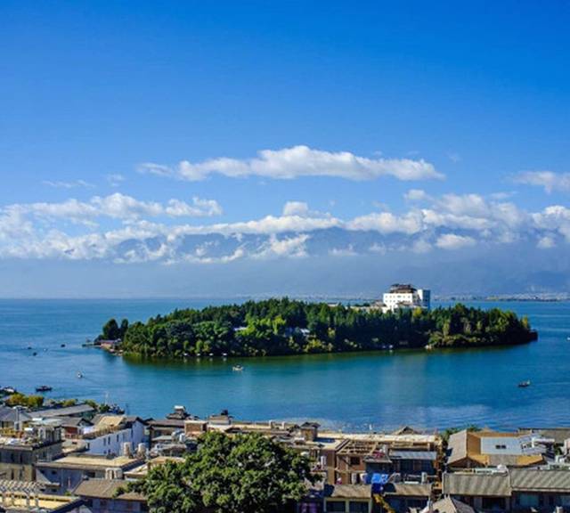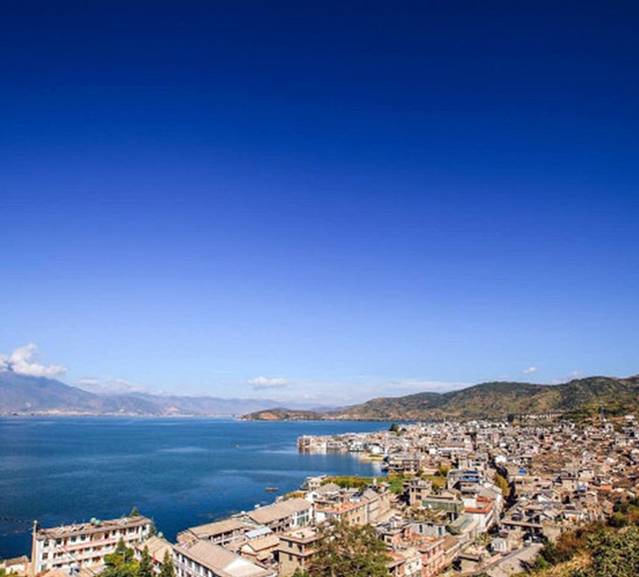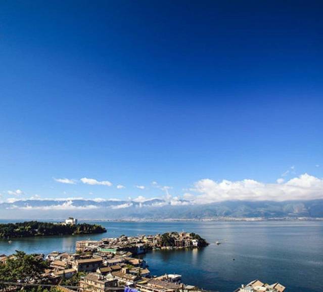 双廊后方的小观景台上,看双廊和南诏风情岛。这里游人不断,每个团队游客,都会在这里停一停拍下照。