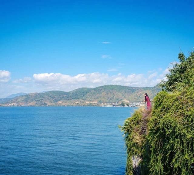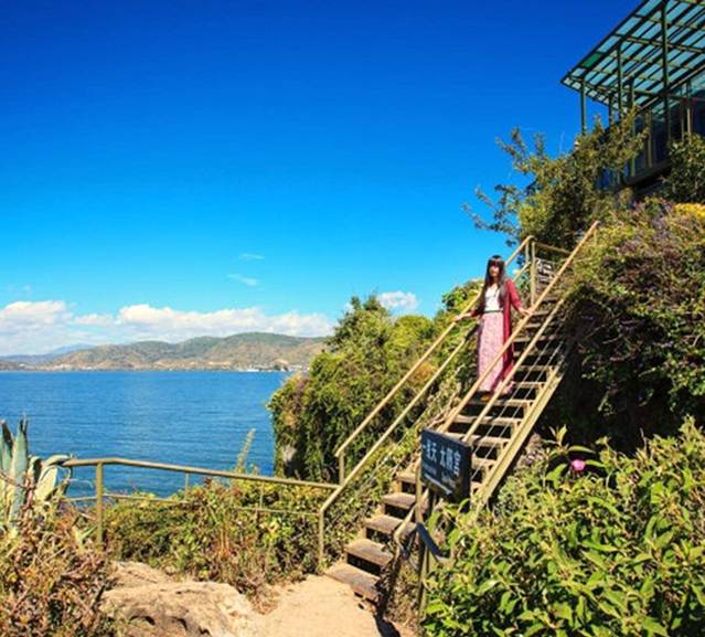 双廊临海的很多地方都被别墅包围了,根本就看不到海。这个地方瞎晃了好久才晃到。之后去租了两台电瓶车,直接海边骑行,比这里看洱海,爽多了