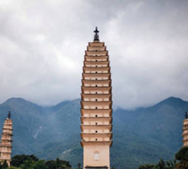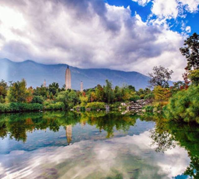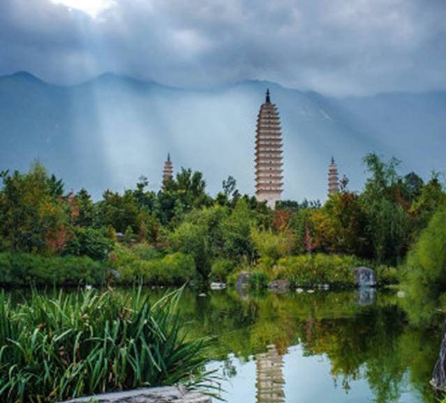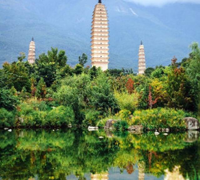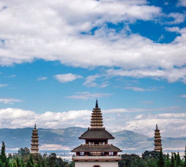 在大理古城北城门,就能看到崇圣寺三塔了金色的屋顶了。离古城其实也只有1.5公里,骑着自行车就到了。它是大理历史上规模最为宏大的古刹,南诏丰佑年间曾有殿宇千间,大理国时期是皇家的寺院。崇圣寺三塔由一大二小三阁组成。大塔又名千寻塔,当地群众称它为“文笔塔”。来此观光的游客非常多。从正门上去下来都有电瓶车可以坐,买单程或者来回都可以。我们是走上去,坐车下来的,非常的大,特别的累。单程好像是15一个人,记得不太清楚了。