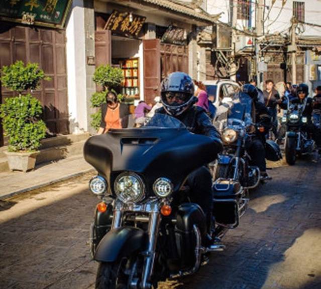 偶遇一哈雷车队。