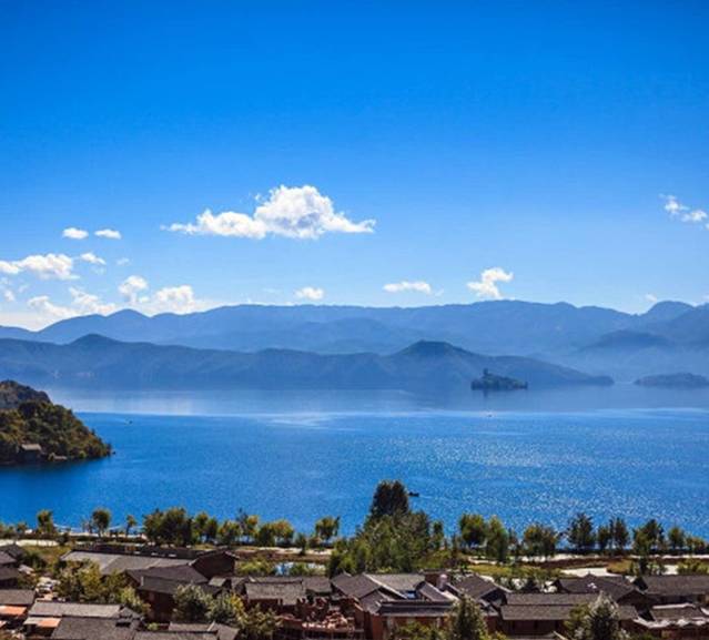 快到里格岛的时候,司机会开到一个山顶,在公路边停下来,看一看泸沽湖全景。一湾蓝色的水,静如明镜,此刻是很雀跃啊,泸沽湖是来对了。