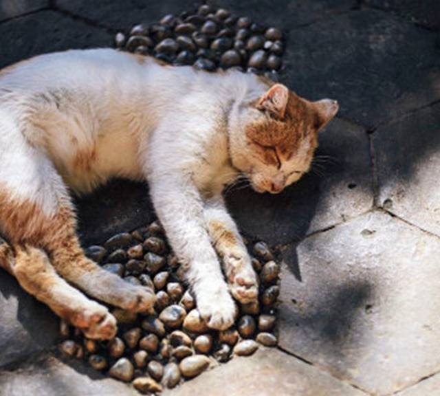 石桥上假装晒太阳。