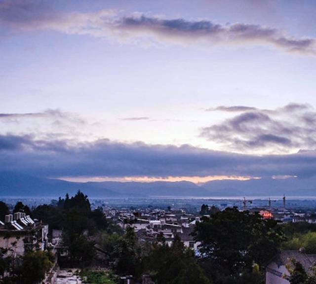 远处的山下面一片照亮的,是洱海。