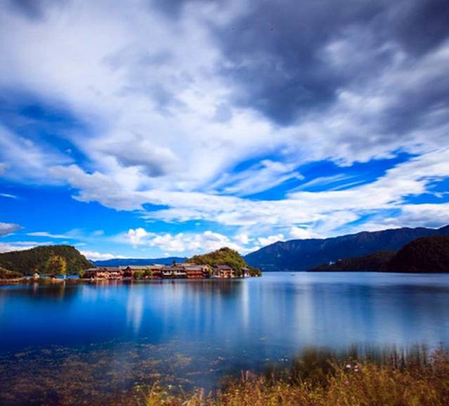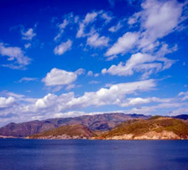 泸沽湖位于云南宁蒗县与四川盐源县之间。她像一颗晶莹的宝石,镶嵌在滇西北高原的万山丛中。湖面海拔2685米,面积约48.5平方公里,其中云南境内30.5平方公里,总容水量19.53亿立方米,湖水向东流人雅砻江,最后注入金沙江,属长江水系。该湖平均水深40米,最深处达93.5米。 整个湖泊,状若马蹄,南北长而东西窄,形如曲颈葫芦,故名泸沽湖。泸沽湖不仅水清,而且岛美。 泸沽湖四周青山环抱,湖岸曲折多湾, 共有17个沙滩、14个海湾; 湖中散布5个全岛、3个半岛、1个海堤连岛,一般高出水面15至30公尺,远看象一只只绿色的船,飘浮在湖面。其中,宁蒗一侧的黑瓦吾岛、里务比岛和里格岛,成为湖中最具观赏和游览价值的三个景点,被誉为“蓬莱三岛”。泸沽湖边居住的摩梭人属于纳西族的分支,总人口约4万。古老的摩梭人奉行的是“男不娶女不嫁”的走婚制度,是现今唯一仅存的母系氏族。