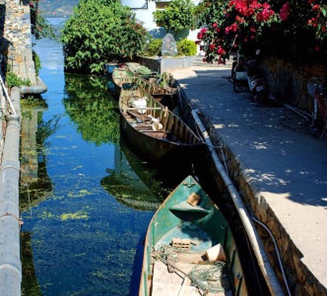 湖边的渔船,看湖上日出就是坐这个。
