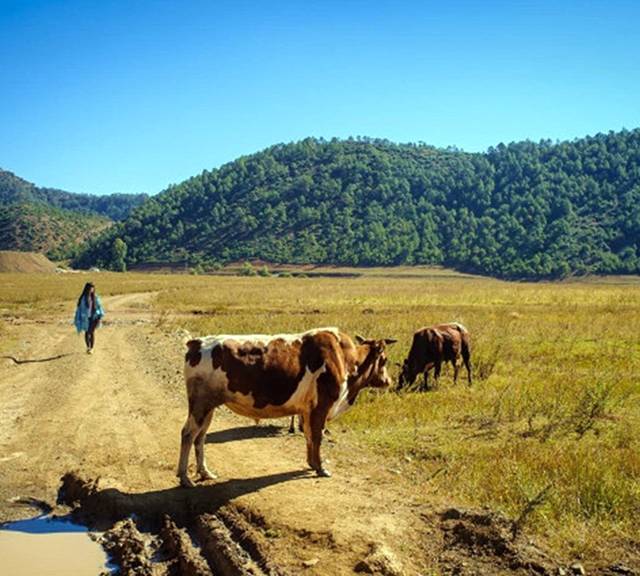 远处的村庄就是女儿国。