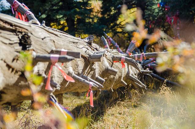 清高宗皇帝乾隆狩猎时多次到此观赏云杉林,并留有“我闻松柏有本性,经春不融冬不凋,凌空自有偃盖枝,讵无盘层傲雪霜”的诗句。云杉林最年少、最壮硕的树会被当地人称为树王、树后,当地的牧民会给他们系上圣洁的哈达,随着时间的变迁,老树王终会死去,新的树王又会诞生······