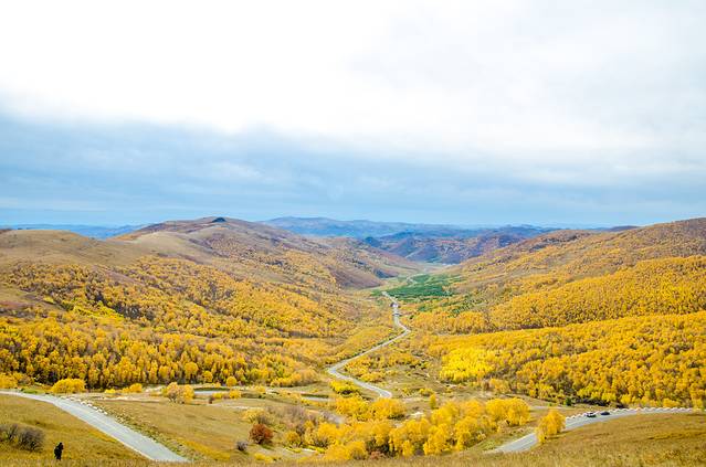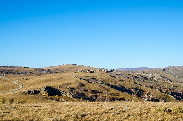 赤峰地广人稀,从一个景区到另一个景区也许需要驱车几个小时,漫长的车程,好在有车窗外无尽的秋色可以解乏。笔直的柏油马路,我们的车辆不断地穿梭于森林与草原,循环往复间,来到了赤峰最为独特的景区——克什克腾石阵景区。