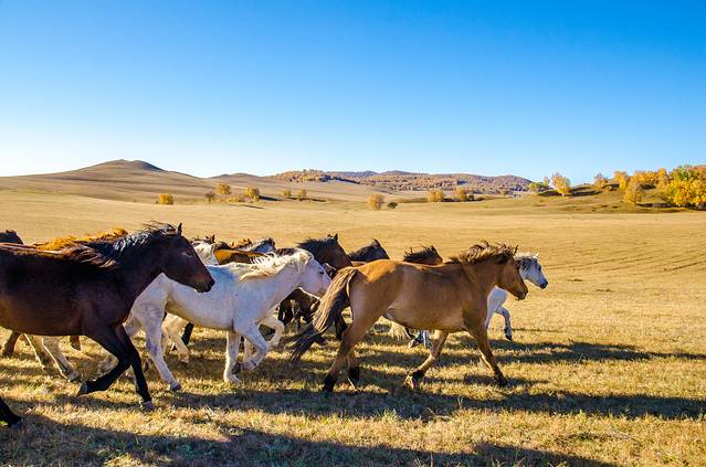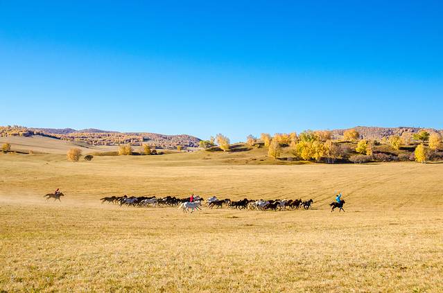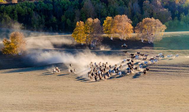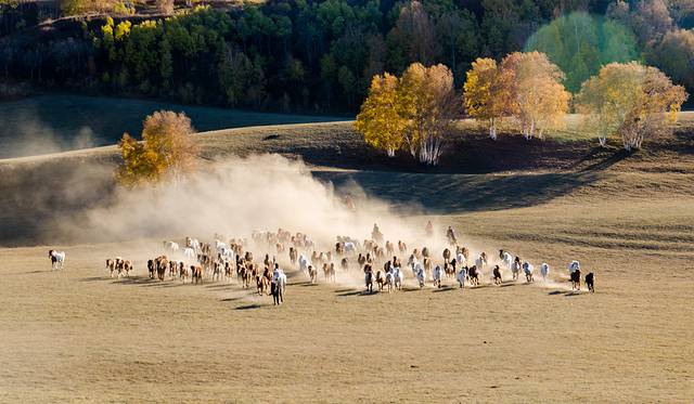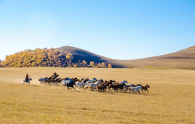 秋季的乌兰布统,摄影的天堂,摄影人梦中的故乡。别处难得一见的万马奔腾、马踏水花、马术表演,在这里随处可见。身着蒙古袍的汉子,一声大喝,手扬长鞭,成群的骏马驰骋草原,这才是草原上本该有的模样……
