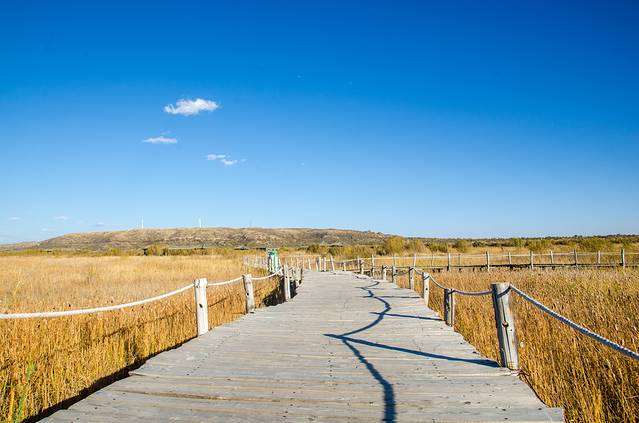 游览完曼陀山,我们乘坐景区观光车来到碧海银滩风景区,碧海银滩同样位于达里诺尔湖的南岸,想要到沙滩边需要穿过很大一片芦苇荡,入秋后的芦苇荡虽不及白桦林那般艳丽,在阵阵秋风中,却别有一番秋的韵味。