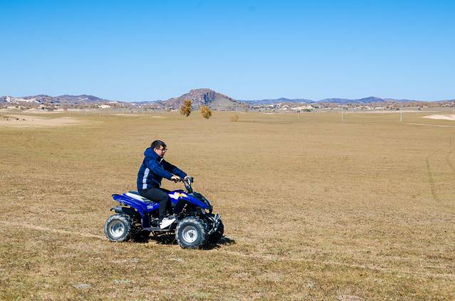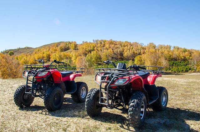 轰鸣的油门声,刚毅的外形,这就是草地摩托。如果你不习惯马匹的颠簸,又想在草原上驰骋一番,草地摩托无疑是最好的选择,别样草原上的速度与激情。