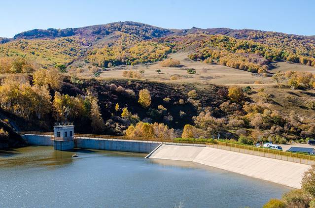 蛤蟆坝位于河北与内蒙古交界的克旗乌兰布统境内,是一块高起的平缓坡地,三边是“沟”或低地。这里多丘陵山地,地貌独特,秋天景色绚丽多彩,漫山遍野的红叶,流金溢丹,簇簇红叶中,明黄的白桦叶融合在一起,汇成一幅幅浑然天成的图画。