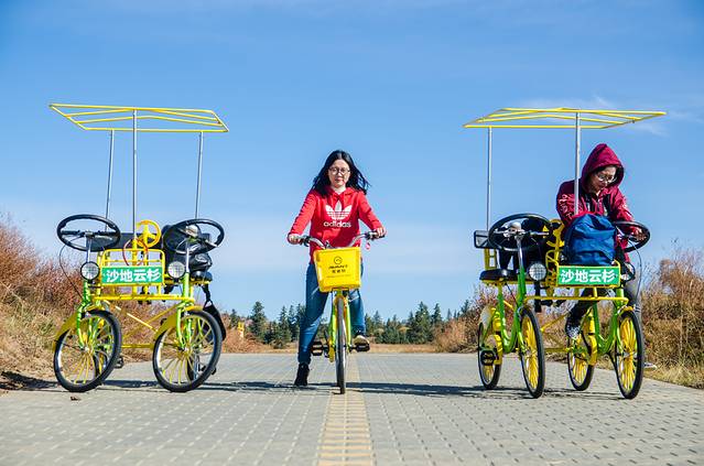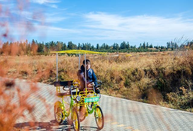 沙地云杉景区面积颇大,云杉林也有好几片,游览景区除了乘坐景区的观光车外,还可以租自行车游览。无论你是一人出行、两人同行,亦或是家庭出游,都能找到适合的观光自行车。骑行在这样的天地间,呼吸着清新的空气,旅途的身心愉悦应该说的就是此时的状态。
