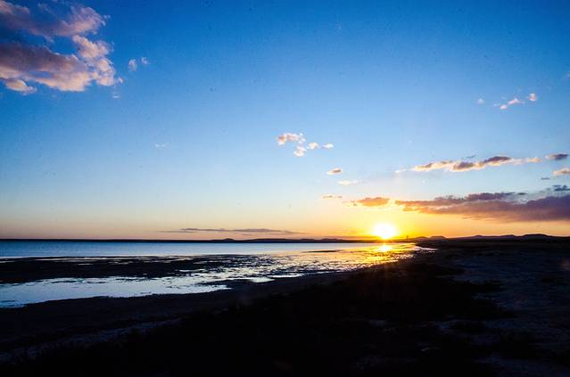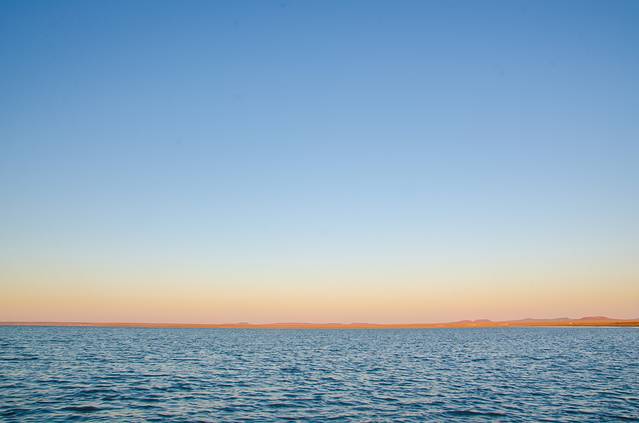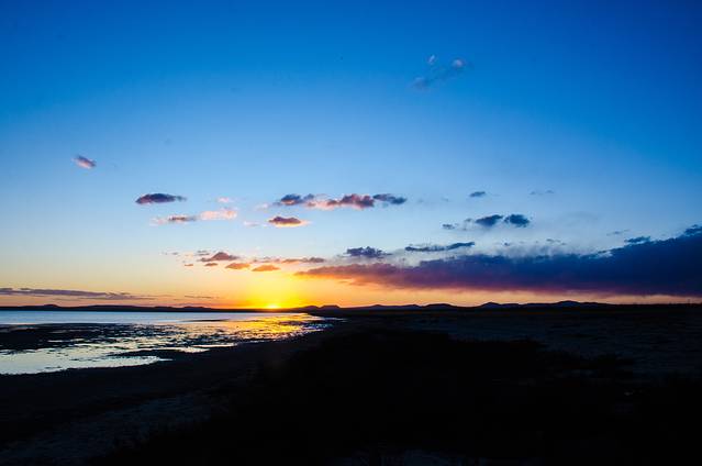 “平原观日出,知其苍茫;高山观日出,得其壮阔;海上观日出,晓其瑰丽。”凌晨四点多的达里诺尔湖,寒风掠过,即使穿着颇多也会冻得瑟瑟发抖,颤栗着等待着东方的那一抹金黄。当远处的地平线被金黄色染透,我们激动地用稍有直觉的双手调好机器对准最为闪光的那一块,等待着太阳的升起。