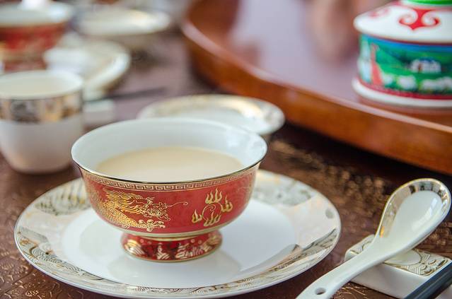 在内蒙,有这么一句谚语“敖包当神拜,吃肉拿手拽,奶茶当饭菜。”只要你去内蒙,每一餐你都会看到奶茶的身影,但是内蒙的奶茶并不是我们平常喝的那种奶茶,内蒙奶茶是咸的,许多人刚开始会不习惯。如果不习惯可以加糖,或者加点炒米一起煮,口味会更加鲜香。