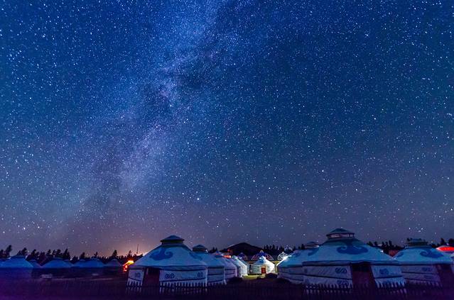 夜深了,走出蒙古包,抬头仰望这漫天的星空和那悬挂的银河,心中无比激动。走过许多地方,去过高山,去过海洋,一直期待的银河却一直未曾见到,如今终于在赤峰见到这梦幻的银河。