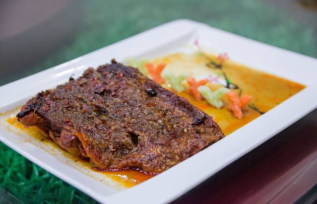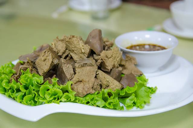 度假村下午刚刚宰杀的绵羊,极为新鲜的羊肝,沾上特制的蘸料,味道极为鲜美。