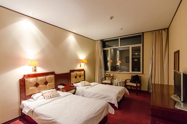 晚上入住的是经棚镇唯一四星级酒店——阳光温泉大酒店,装修简洁但不失大气,客房装饰豪华、舒适、幽雅。房内均配备高档洗刷用品、花色布草,能充分体验入住高星级酒店客房的尊贵享受。