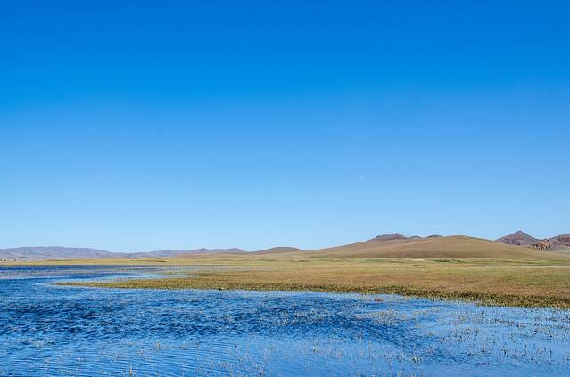所谓的泡子就是大面积的水面,也就是湖。这里的水面开阔,四面环山,水中的芦苇错落有致。夜幕降临,在泡子边的蒙古包里住一晚,围坐在篝火旁欣赏如泣如诉的马头琴和抑扬悲壮的蒙古长调,又是一番别样的情怀。夜深,枕边细细体味寂静草原之夜浪漫情趣,耳旁风吹芦苇的沙沙声会催人入眠。