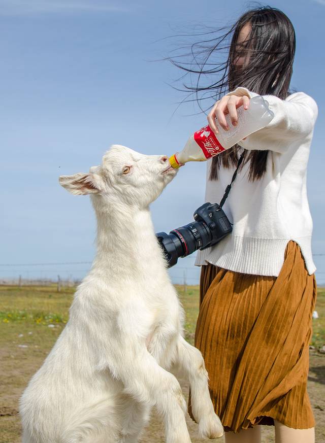 喂羊羔,来到草原,除了在草原上策马奔腾,和牛羊的亲密互动自然也不可少。喂羊羔也是有技巧的,想要像上图那样让羊站起来,首先要挑羊,绵羊体型比较臃肿,站不起来,所以必须喂山羊。喂得时候,用奶瓶挑逗下山羊,然后将奶瓶放在山羊的头顶,让山羊站起来够·····