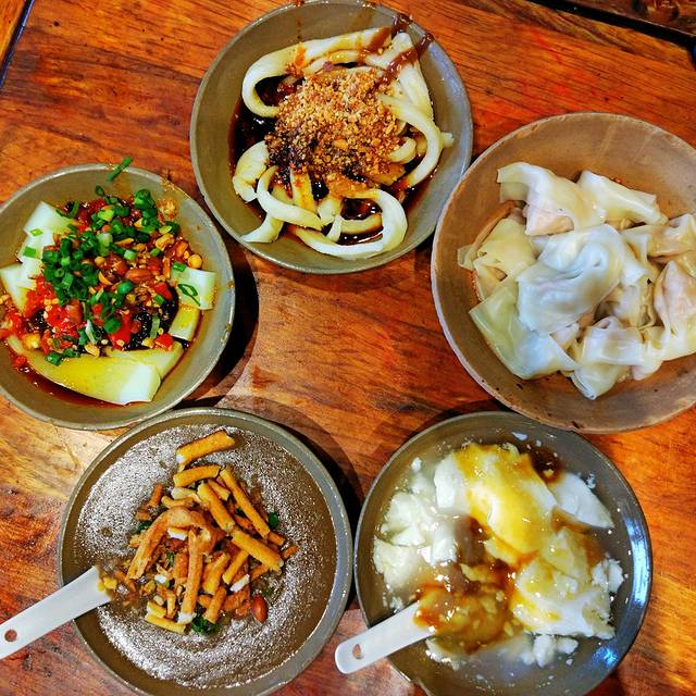 攻略之上看到的必去的小店之一,不大的门脸,坐满了人。价格合理公道,一份食物的价格在5到10元之间。桌子上放着一大盆的串串,随吃随拿。