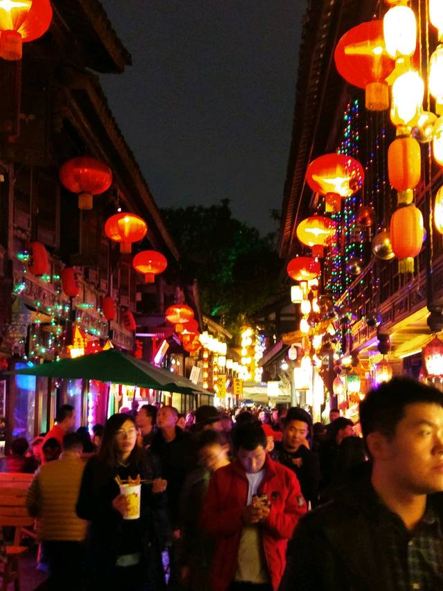 锦里,不得不去的一条古街。白天时候只是简简单单的一条街,魅力完全在晚上才能绽放。