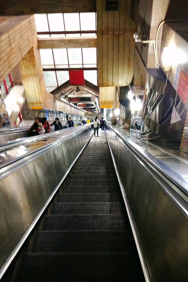 皇冠大扶梯位于火车站附近的两路口,单程票价两元,应该算是重庆人最特别的交通工具之一。单程运行时间大概两分半,坡度30,为亚洲之最。站在上面恐高的人可能会发抖。
