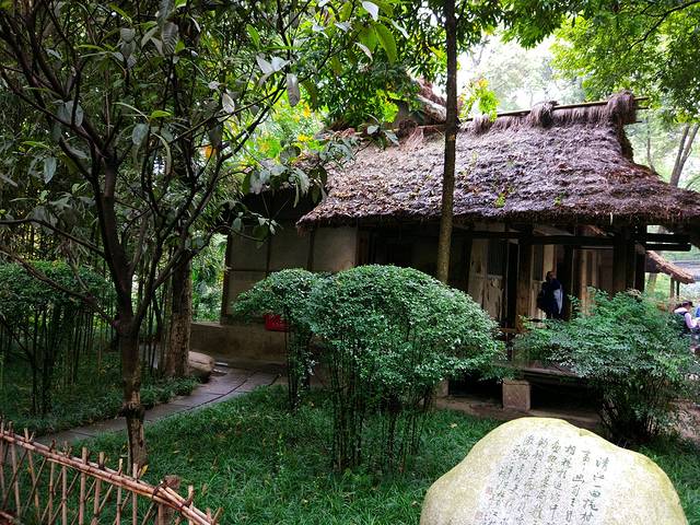 在原本草堂的基础上,扩建成一座景区,早晨的天气微阴,有一丝丝冷,倒是很衬这座草堂的感觉。据说,杜甫在此完成了240首诗作,这里更是因茅屋为秋风所破歌而闻名。
