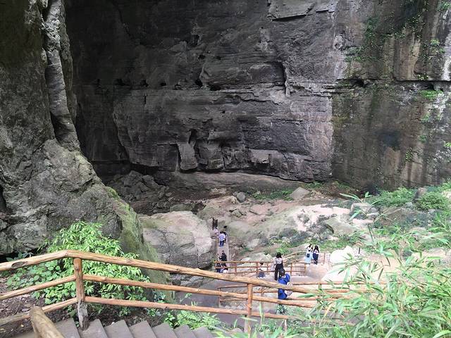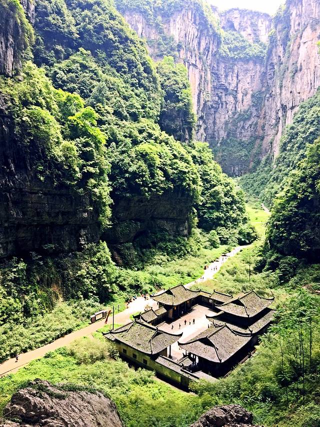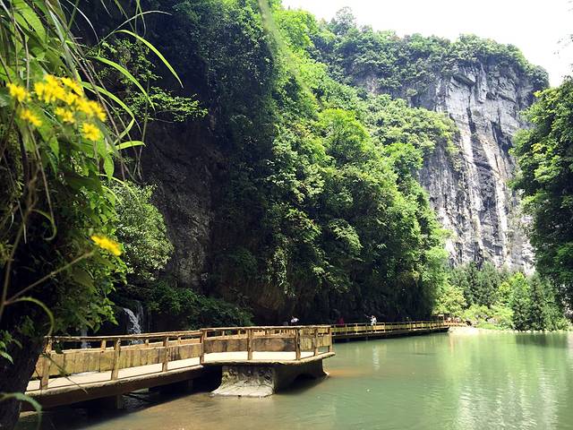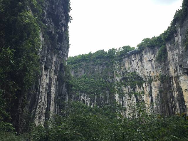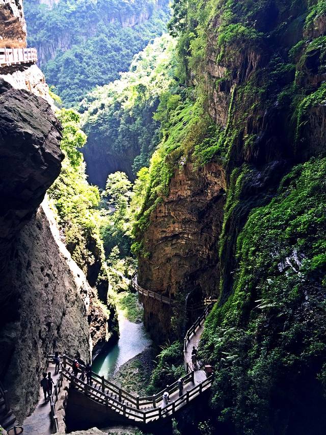 天生三桥是典型的喀斯特地貌,峡谷幽深,峭壁直立,林木葱翠,抬头见绝壁,举头望洞天,涓涓瀑布,溪流淙淙,行至天龙桥唐代院落——天福官驿,更给一种神秘之感。