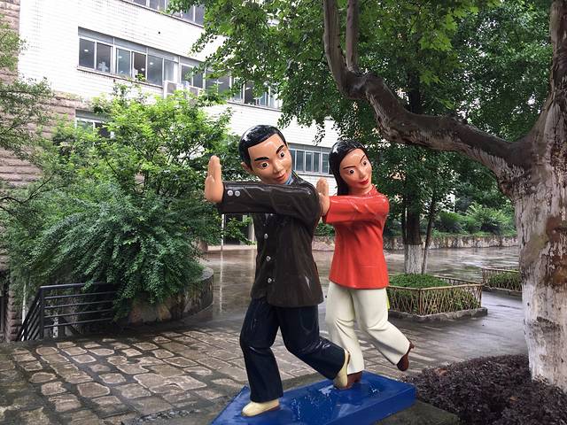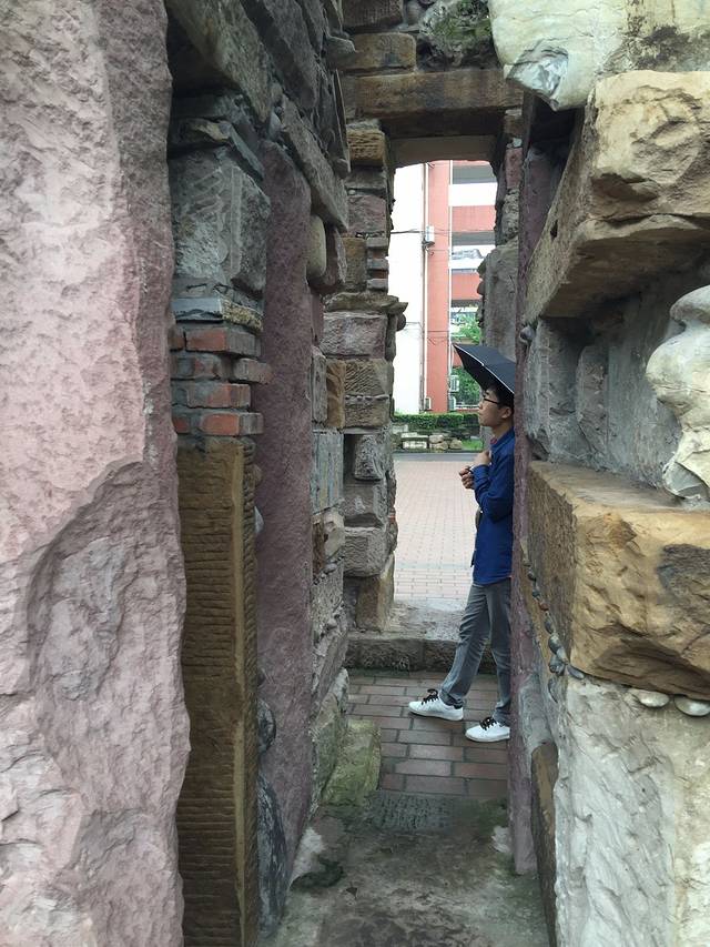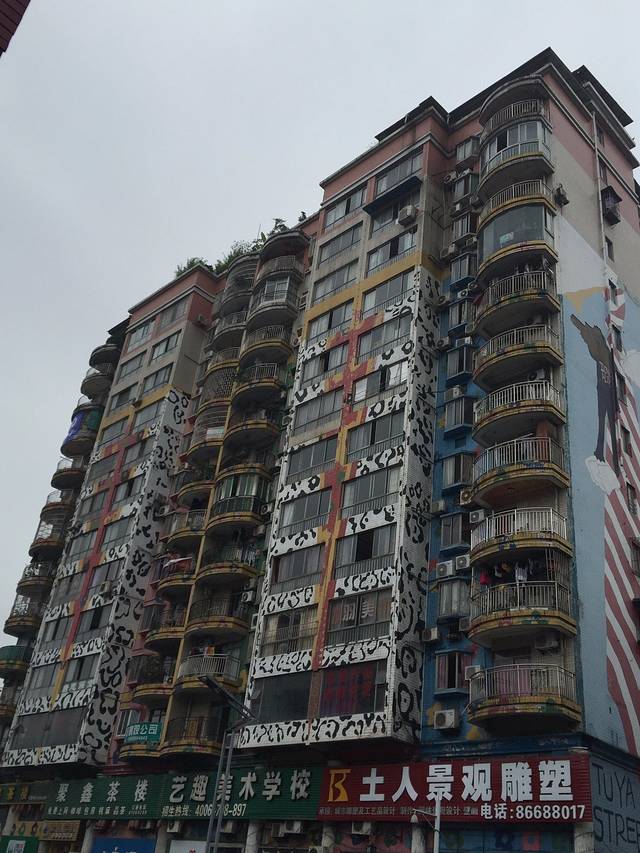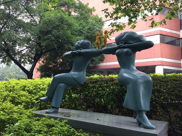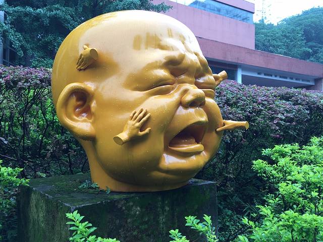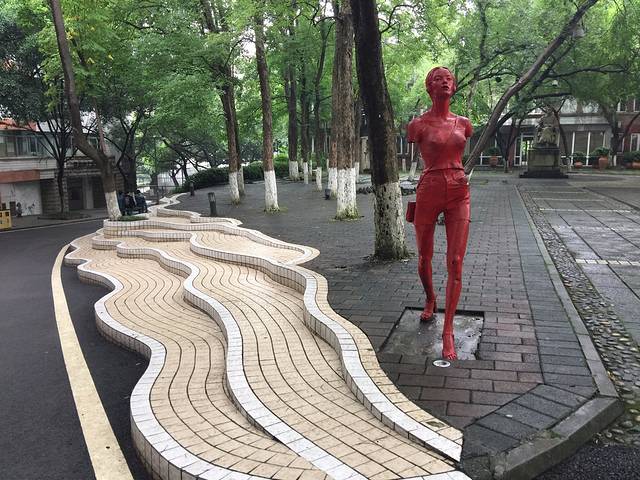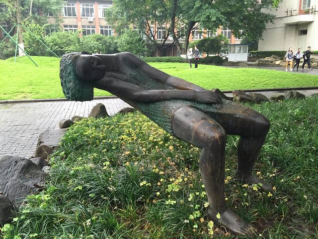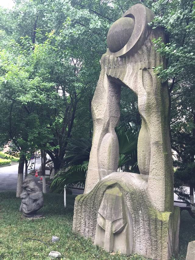 早就听说四川美术学院附近有一条涂鸦墙,真的!果不其然,在公交车上就看到很多的楼房都有着涂鸦,还有好多的雕塑摆在路旁,好有文艺范啊!这不,学校到了,没人管直接就进去了。