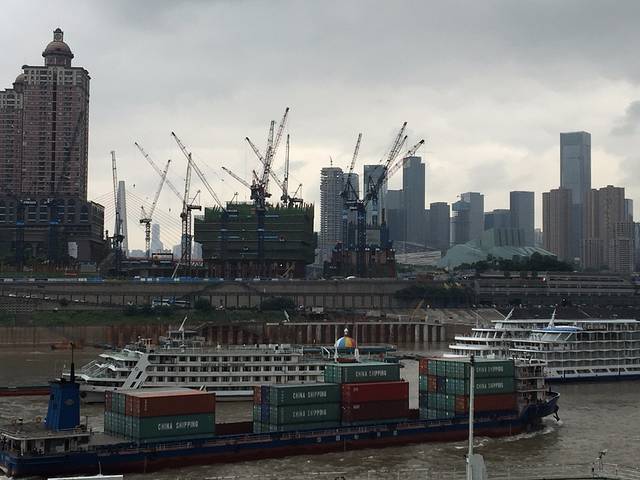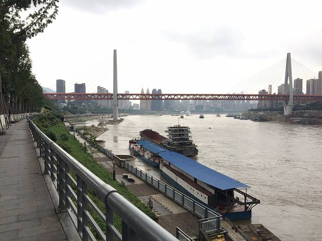 依江而望,远处好几座大桥横跨在长江之上,重庆就是桥多,坐公交车时不时的就过桥,待的时间还有些短,方向啊、线路啊、还没有完全搞清楚。
