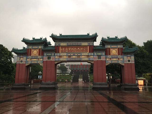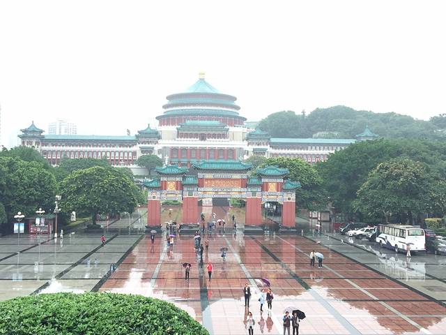 天公不作美又下起小雨,还好是小雨,我打着伞在大礼堂上上下下来回的看,建筑的每一个细节都那么漂亮,真不愧为重庆人民的骄傲!