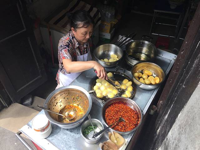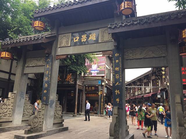 磁器口从正门进去,石板路很窄,两边是各种摊贩店铺,有很多小吃和特产,陈麻花和鸡杂尤其扎堆,合适一路吃吃逛逛。不喜欢热闹的旅行者转走其它的小巷,或许还能品味到真实的生活。