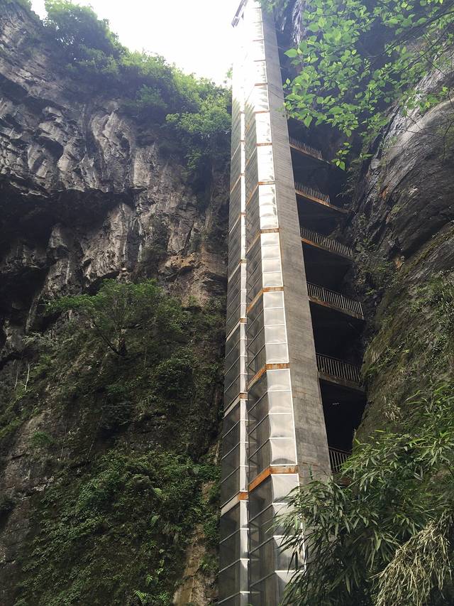从游客中心坐景区车一直到景区门口,可能不是旺季游人不多,进入景区要乘电动直梯直达坑底,神秘的旅行开始了!