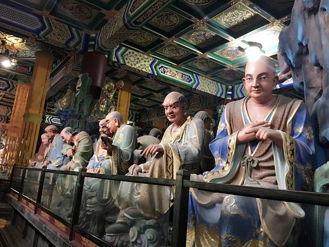 进门就可见许多宋代的摩崖雕刻,更有趣的是罗汉堂内供奉500尊罗汉像形态各异,栩栩如生,气势壮观。(里面有老太太看着不让拍照啊)