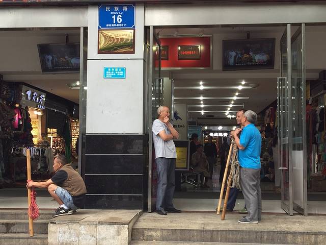 想着今天要去乘坐长江索道(在新华路上)到南山区抗战遗址。就一路走着,途径小商品市场看到昔日有名的“棒棒军”都没了活计了,三三两两聊天等活,可能是重庆的交通太便捷了,“棒棒军”也失去了往日的风采,不过在小商品市场可能还会找到生计。