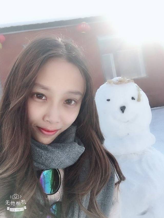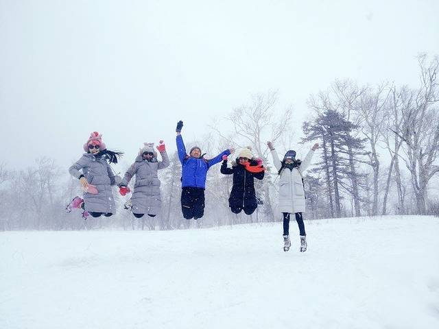 好多人来雪乡是奔着穿越来的,但是描述却很少,我会重点描述。首先马拉爬犁那段路虽然是平路,但是如果你走进来也是够呛的,雪山的雪很厚,走起来累人。我是当天第一个穿越的,前面都没人,然后发现山是没有路的,也没有阶梯,只有跟着前一天遗留的脚步走,有时候看到别人拍照踩乱的路就会没了方向,还是有迷路的可能性的,如果没人陪伴,千万别自己一个穿越!!没有踩过的雪别去踩,深不说,还有可能下面是坑,人生安全很重要。幸运的是走着走着遇上一行旅友5个人,他们分别是路上偶遇组队的,正好在我最艰难的时候遇上了感恩上苍。从上山1/4开始就是比较陡的路,雪好像结冰一样光滑的,穿太多会出汗(我反正穿那么少都出汗了)也难跨越,没有扶着的地方,我滑了好多次都是后面的大哥顶住,然后发力推我上去的,大哥是本地人,之前穿越过,经验很丰富。他说最好不要停太多,越休息越走不动,那天还下着风雪,飘到你眼睛都睁不开。 😩尽管这样,我还是狠狠地摔了一跤,当时不怎么痛,但是后面一直都隐隐发痛呢,回到旅馆发现都红肿了。好不容易走到1/2,实在走不动了,并且上面还是更陡的路,虽然很想勇敢一点,但力不从心,平时还是太缺乏锻炼了。但,能用钱能解决的问题就不算大问题,我愉快地坐摩托上去了。爬上去还需要1个多小时,但是雪地摩托10来分钟就到了。当时缺车,我足足等了一个小时,等到一个团30多个人都来了,有一堆的人要坐摩托,只有我一个孤零零的,想到大哥他们说山顶还要等着一起下去,我就挤进人群里可怜兮兮地说:大哥我是最早来的,只有我一个,可以让我先走吗?最后在兵荒马乱的时候大哥还是把人群压了下去让我先坐上车 ❤再一次感恩。并且上到山顶刚好看到旅友们也到了。于是我们继续愉快地组队,拍照纪念一下。