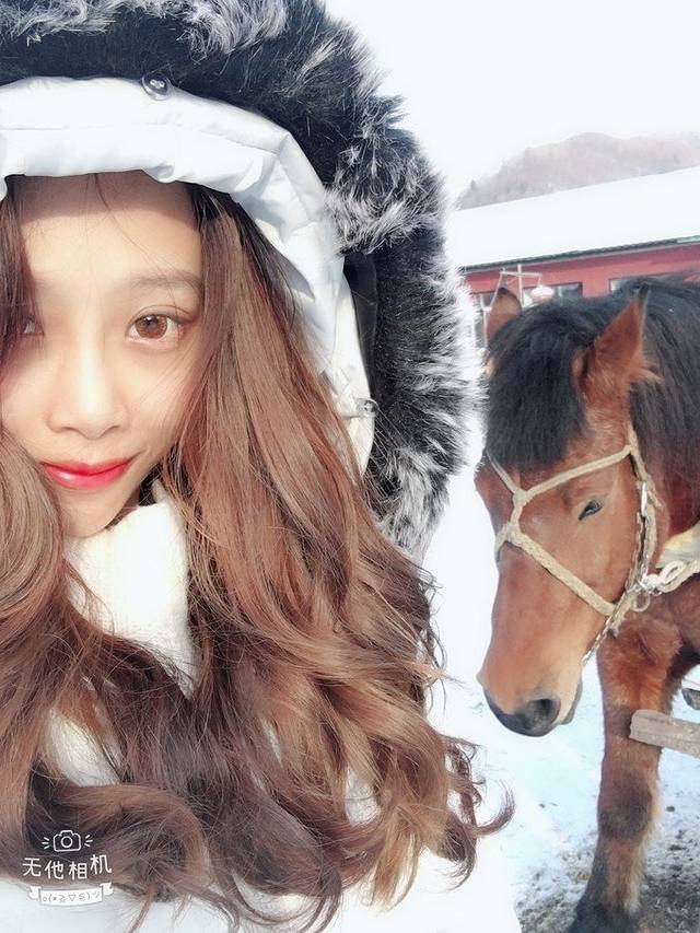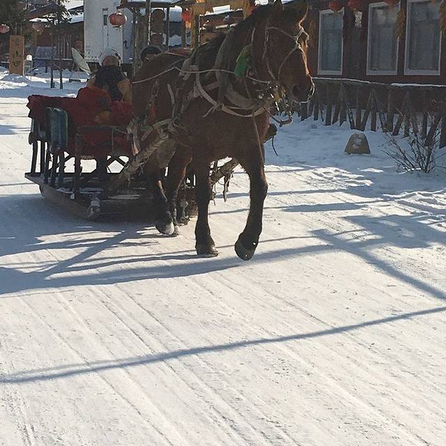 缘分真的是很神奇的东西,前一天在雪谷看到很多的马拉爬犁,不知道为什么就看中这一匹,还跟它合了照,有朋友特意截图放大它的眼睛说:看它嫌弃你的小眼神。结果第二天我居然就坐!上!这!车!了!马车是小哥哥前一天帮忙订的,80坐一次,哪里订都一样,价格统一的,能帮你在翻越15公里(5-6小时)的雪山时少走半小时的平路。这里插个小插曲,大概因为阿姨知道我是独自旅行的,也打算独自穿越,所以对我特别的好,早上煮好早餐叫我吃,说不收我钱,怕我太累了叮嘱我一定要吃多点,还送了一包东北大米给我,特别的感动都说没有人会无缘无故地对一个人好,但有时候一些陌生的人儿往往就是给你感动,不求回报。