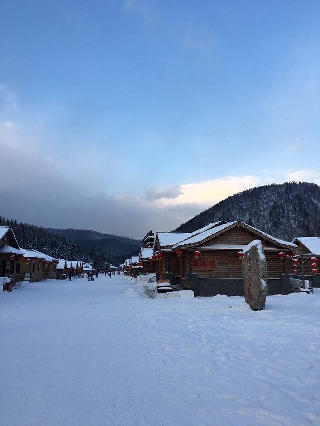 听说雪谷是10月底11月初开始下雪,但一山之隔的雪乡从9月份就开始下雪了,所以真的是厚厚一层的。有一条雪韵大街,好商业化,异常热闹,晚上还有家家户户放着音乐,跟逛酒吧街一样😄至于行李,是在五常山方向的停车场(也叫山河屯方向)雪乡是不允许外来车进入的,拿行李也是个遥远的旅途,要走到雪韵大街几乎尽头,有观光车去,只需要给司机雪乡的门票就好了。(门票是有观光副券的)3点半的时候就饿到不行组队吃饭去了,在蜂窝吃的首榜找到周大姐家,亲试确实分量很足,价格也合理,味道还是可以的。我们4个人,两男两女饿到不行,点了3个菜,没有一样是吃得完的,154,平均每人38而已哦。由于太饿了一上菜就吃,谁都没拍到照片,就不能给上图了。