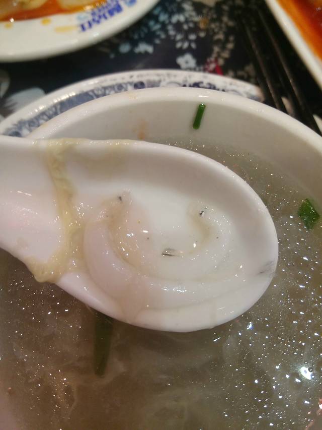 莼菜银鱼汤,推荐指数5颗星。银鱼像广东这边只用来晒干保存来吃的那种,第一次吃这么小白的鱼,里面的莼菜估计也是那边特有的,口感很特别,形状铺开像荷叶,煮熟之后就卷起来了。