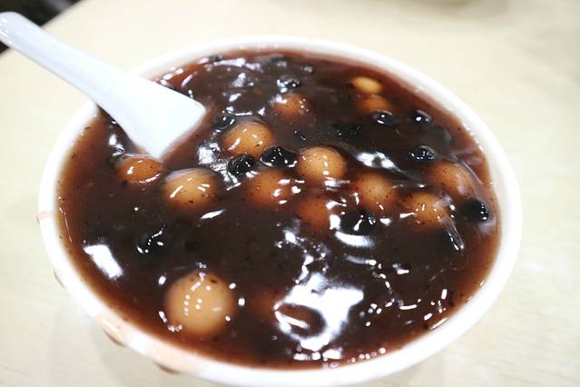 甜品,红豆小汤圆,底汁用葛粉之类的调的很粘稠,在南方很少这种吃法,新奇味道一般