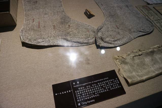 博物馆内一角,古人连作弊的袜子,感觉抄下了一本书